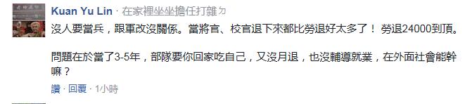 其實(shí),不怪臺(tái)灣民眾排斥當(dāng)兵,且不說(shuō)有重創(chuàng)軍人利益的年改,蔡英文當(dāng)局對(duì)待軍人的態(tài)度也令人不齒,“有事軍人干,沒(méi)事干軍人”的做事風(fēng)格不僅傷了臺(tái)灣士兵的心,也讓?shí)u內(nèi)民眾對(duì)當(dāng)兵一事避之不及,臺(tái)灣資深媒體人黃敬平更用“好男不當(dāng)兵,好鐵不打釘”形容全臺(tái)民眾現(xiàn)今對(duì)當(dāng)兵一事的態(tài)度。