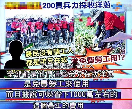 根據(jù)以往的經(jīng)驗(yàn),在民進(jìn)黨眼中,臺(tái)灣警察變成看守蔡英文祖墳的“守墓人”是“合乎公共利益”的需要,那么,如今臺(tái)灣軍人變成免費(fèi)洋蔥工或殺豬工的理由也應(yīng)該同上吧,更何況,軍人拔洋蔥的“壯舉”還省下了千萬(wàn)的農(nóng)工費(fèi),也許對(duì)蔡英文當(dāng)局而言,這也是“人盡其才”的政績(jī)呢~