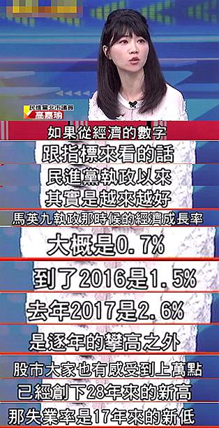 來看看這位民進黨議員是如何為“鐵票倉跳票”作解釋的吧:民進黨曾批判馬英九是“數字治臺”,而這個綠營小姐姐一上來就先祭出“數字陣”,說從經濟指數上看,民進黨與馬英九執政時期好很多了啊;之后拿出“甩鍋招”,說飯店倒閉有很多方面的原因啊,店家不要都怪到民進黨身上,你們自己也要轉型啊;接著開始“數政績”,說陸客雖然不來了,但日本和東南亞客人有增加啊,而且像臺中市長林佳龍之類的也有積極的幫地方在招商啊;最后搬出“誠懇臉”,表示雖然民進黨做了很多“復興經濟”的事,但若人民感受不到,那蔡當局也會“好好檢討”……