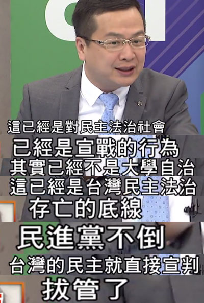 “欲加之罪,何患無辭”,蔡當局粗暴“卡管”的背后,正是民進黨對臺灣所謂民主法治的宣戰,也許,前馬英九辦公室副秘書長羅智強所言非虛:民進黨不倒,臺灣的民主也就可以宣判“拔管”了!