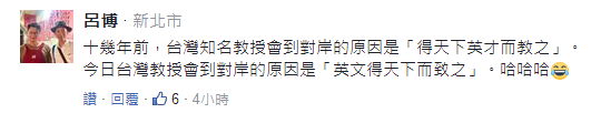 一名曾任一級主管的臺大教授感嘆,蔡當局的所作所為,唯恐臺灣高教崩毀得不夠快,“難道非要把優秀學生與教師都逼走,民進黨才會高興嗎?”