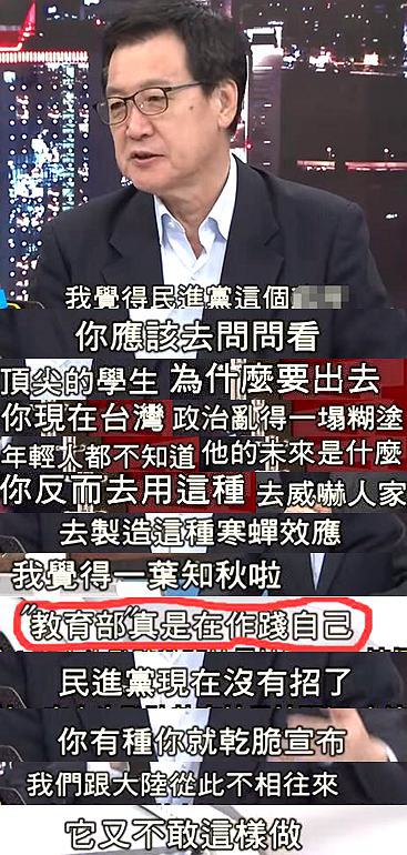 說(shuō)了這么多,明眼人都很清楚島內(nèi)高中畢業(yè)生“棄臺(tái)就陸”的趨勢(shì)已經(jīng)擋不住了,為什么蔡當(dāng)局還要如此強(qiáng)硬阻攔呢?黃智賢一語(yǔ)道出了真相!