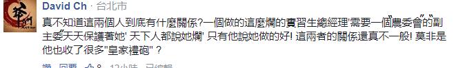 還有為了襯托出北農(nóng)現(xiàn)任總理經(jīng)吳音寧之“好”不惜拉上前任墊背的陳吉仲,網(wǎng)友也奇怪“怎么總看到這位官員公開發(fā)言挺吳音寧”、“這倆人到底是啥關(guān)系”、“難道他也收了很多‘皇家禮炮’”……