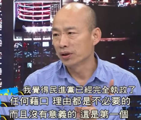韓國瑜對此事的看法很清晰,兩個層次。第一,你都全面執政了,還找什么借口?