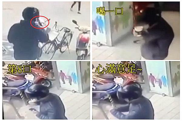 店家之后通過調閱監視器畫面,發現男子拿了咖啡后,一走出超商便打開杯蓋,一口接一口地喝,沒想到半小時后竟會回到店里鬧,行徑讓人超傻眼。
