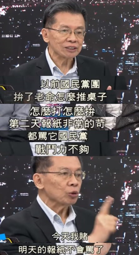 沈富雄評(píng)論稱(chēng),以前國(guó)民黨杯葛,不管多激烈都要被罵,戰(zhàn)斗力不夠;不過(guò)這一次,國(guó)民黨“醒過(guò)來(lái)了”。