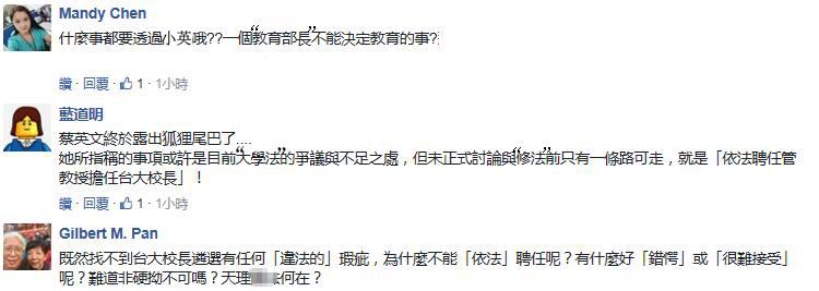 3)“一個清楚的事實”:無論是臺大校長遴選的爭議,或是“教育部長”的決策,都沒有所謂她這個領導人“默許”的問題,因為“這樣的操作無助于解決問題”。