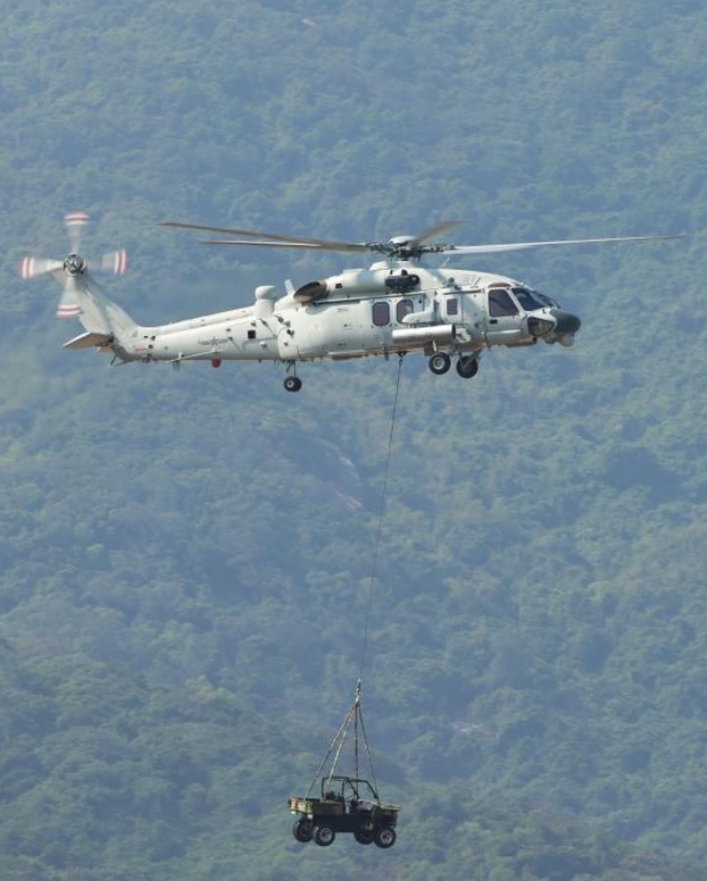 艦載型直-20的出現(xiàn)標(biāo)志著中國(guó)海軍在艦載直升機(jī)領(lǐng)域取得重大突破,其機(jī)身兩側(cè)短翼,可掛裝機(jī)炮吊艙,也可掛裝魚雷,執(zhí)行反潛和針對(duì)海陸目標(biāo)進(jìn)行火力支援的任務(wù)。在表演環(huán)節(jié),海軍版直-20掛裝一輛輕型突擊車,吸引現(xiàn)場(chǎng)觀眾不住按快門。在實(shí)戰(zhàn)中,當(dāng)臺(tái)軍看到直-20時(shí),可能意味著臺(tái)海空域、海域作戰(zhàn)已告結(jié)束,登陸作戰(zhàn)已經(jīng)開始。