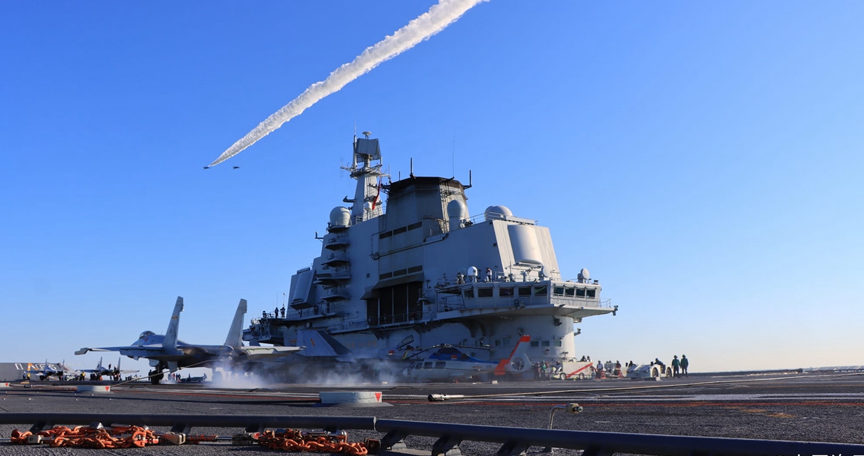 解放軍航母訓(xùn)練中。(圖片取自網(wǎng)絡(luò))
