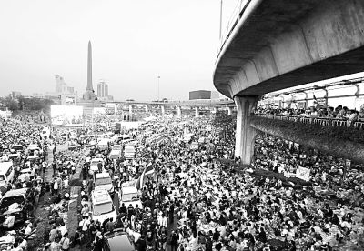 12日傍晚,“封城”行動(dòng)拉開序幕。當(dāng)?shù)貢r(shí)間18時(shí)左右,示威者封鎖了3個(gè)位于曼谷市中心及北部的主要十字路口,并設(shè)置沙包、輪胎等路障。到13日凌晨,此前宣布的7個(gè)主要交通路口已全部被示威者封鎖。在“封鎖曼谷”行動(dòng)中,反政府組織共設(shè)立了7個(gè)主會(huì)場(chǎng)和8個(gè)演講臺(tái),這8個(gè)舞臺(tái)呈環(huán)形分布,基本覆蓋了政府行政區(qū)、商務(wù)辦公區(qū)和商業(yè)中心區(qū)以及重要交通樞紐。一旦關(guān)閉這些地方,就等于阻斷了曼谷的對(duì)外連接通道和內(nèi)部運(yùn)行系統(tǒng),“封鎖曼谷”也就得以實(shí)現(xiàn)。