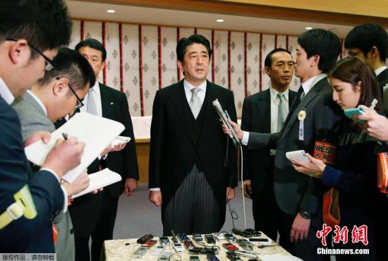 資料圖:2013年12月26日,日本東京,日本首相安倍晉三在迎來12月26日執政一周年之際,參拜靖國神社。圖為安倍晉三接受采訪。