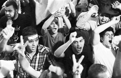 8月26日,在約旦河西岸城市拉姆安拉,巴勒斯坦人在街頭歡呼慶祝。新華社/法新