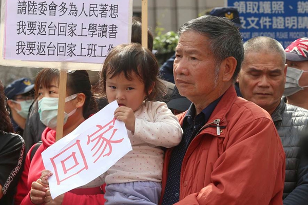 滯留湖北臺胞親屬到陸委會抗議。(圖片來源:臺灣《旺報》)