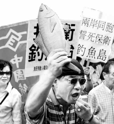 臺灣漁民舉行反日示威,號召兩岸同胞共同保衛釣魚島。王文攝