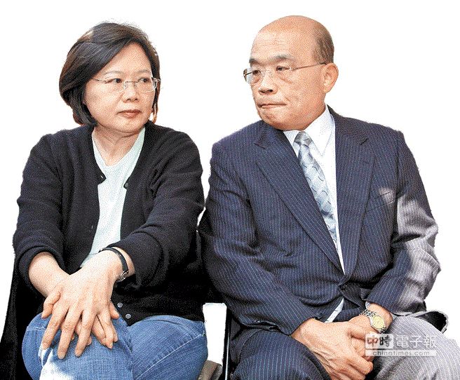 圖 民進(jìn)黨主席蘇貞昌(右)與前黨主席蔡英文(左)是否再度披掛上陣選臺(tái)北市長(zhǎng),基層焦慮感浮現(xiàn)。圖片來(lái)源:臺(tái)灣中時(shí)電子報(bào)。(資料照片 姚志平攝)