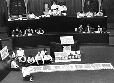 民進(jìn)黨“立委”霸占主席臺抗議核四