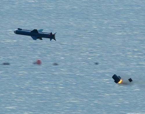 圖片說明:臺軍雄風(fēng)IIE反艦導(dǎo)彈飛行中拋掉二級發(fā)動機(資料)