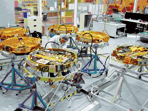 臺“太空中心”工作人員正在進行六顆衛星連結接口測試的準備