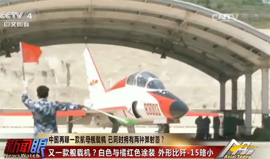 近日,中國官方曝光了航母艦載機日常訓練的畫面,除了外界早已熟悉的殲-15,還有另外一款全新的艦載機型首次亮相。這款采用白色與桔紅色相間涂裝,外型略顯萌態的飛機,就是被外界稱為“海山鷹”的中國艦載教練機。
