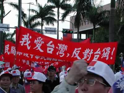 民眾高舉寫有“反獨(dú)”字樣的標(biāo)語