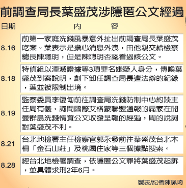 臺當局前“調查局長”葉盛茂涉隱匿公文經過。(聯合報圖)