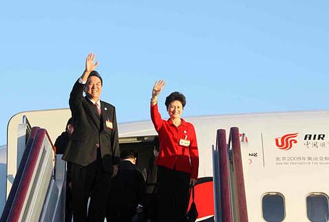 11月3日,海協會會長陳云林一行7時30分許乘機離京赴臺,兩岸兩會最高領導人將在臺北舉行歷史性會談。 新華社記者汪永基攝