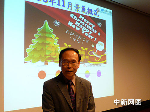 12月28日,臺灣“經(jīng)建會”舉行記者會介紹最新經(jīng)濟形勢。會上提供的臺灣多家知名研究機構的預測顯示,臺灣明年的經(jīng)濟可望由負轉(zhuǎn)正,應有約4%左右的正增長。圖為“經(jīng)建會”研究處處長洪瑞彬在會上接受記者提問。(圖片來源:中新社)