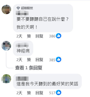 臺灣網友留言痛批賴清德。(圖片取自網絡)