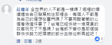 對(duì)于民進(jìn)黨當(dāng)局的執(zhí)政能力與行事風(fēng)格,臺(tái)灣網(wǎng)友可沒(méi)少吐槽。有批評(píng)他們不通人情世故的,比如下面兩位說(shuō)的:全世界的人不都是哪里適合自己發(fā)展就往哪里去嗎?每個(gè)人不都是為自己的理想在奮斗嗎?如果臺(tái)灣就業(yè)多、薪水高、人人豐衣足食,誰(shuí)會(huì)離鄉(xiāng)背井?