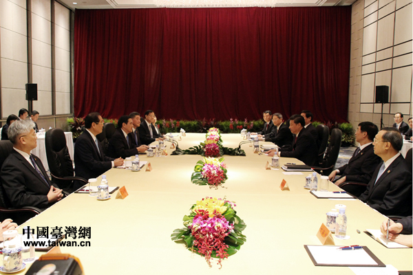 2015年11月7日,兩岸領(lǐng)導(dǎo)人習(xí)近平、馬英九在新加坡舉行會(huì)面。(中國(guó)臺(tái)灣網(wǎng)資料圖)