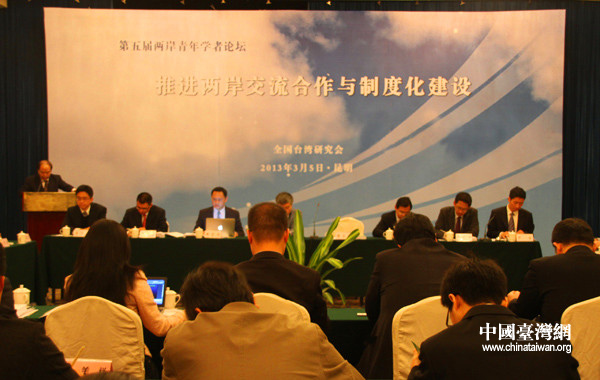 中國臺灣網(wǎng)3月5日昆明消息 今天上午,由全國臺灣研究會主辦的“第五屆兩岸青年學(xué)者論壇”在云南省昆明市召開。來自海峽兩岸的40余位青年學(xué)者,以學(xué)術(shù)的角度、民間的角度,圍繞“推進(jìn)兩岸交流合作與制度化建設(shè)”的會議主題展開了積極探討。全國臺研會執(zhí)行副會長兼秘書長周志懷致辭時表示:制度化的建設(shè)過程是一個不斷發(fā)展、豐富與完善的過程,應(yīng)該倡導(dǎo)由兩岸紅、藍(lán)、綠三方共同構(gòu)建;為了兩岸人民能夠共享制度化建設(shè)的紅利,我們必須執(zhí)著的追求與探索。