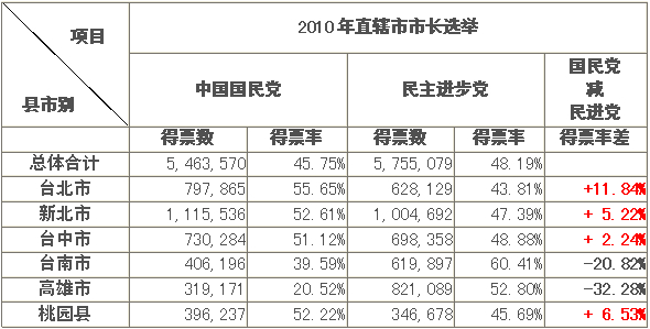 那么,這六市選舉的走勢如何,我們不妨借用歷史的數(shù)據(jù)看個究竟。從2010年直轄市市長選舉的得票率差看,國民黨優(yōu)勢稍顯。