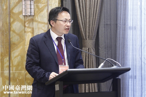 上海臺灣研究所常務副所長倪永杰在研討會上進行主題發言。(中國臺灣網 張潔 攝)