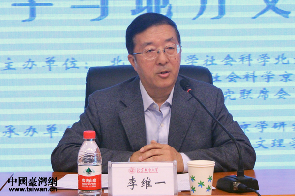 北京聯合大學臺灣研究院院長李維一主持研討會開幕式。(中國臺灣網 張潔 攝)