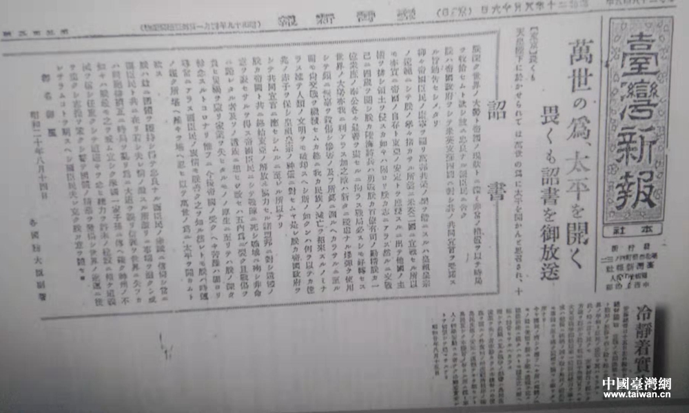 附帶言之,當年從廣播里聽到天皇聲音的人都說聽到的是“沙啞的玉音”,沙啞應是播音效果的問題。2015年8月15日我們聽到日本重新播放的《終戰詔書》,日本天皇雖非深刻反省悔罪,還是認罪降伏,聲音并不沙啞。(作者汪毅夫系廈門大學臺灣研究院講座教授、全國臺灣研究會副會長)