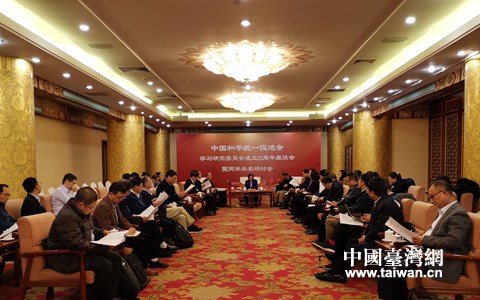中國和平統一促進會學習研究委員會成立20周年座談會暨兩岸關系研討會在京召開。(中國臺灣網 趙靜 攝)