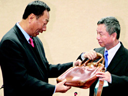 2月14日,楊志良與郭臺(tái)銘當(dāng)面交易,但郭臺(tái)銘只在公文包上寫(xiě)“好膽愛(ài)心包”后,再回贈(zèng)楊志良。郭臺(tái)銘說(shuō),他這是拋磚引玉,希望將來(lái)臺(tái)當(dāng)局多幾個(gè)有膽識(shí)的政務(wù)官,也可以像楊志良捐包做公益。