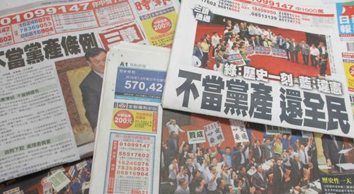 有輿論認(rèn)為:這部法律公告實(shí)施后,將使中國國民黨面臨生死危局。