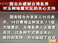 臺灣紅十字組織向青海玉樹災區捐款 國臺辦感謝臺灣各界對玉樹地震災區的關心支持 玉樹地震遇難人數上升至760人 1000多人被救