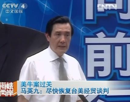 美牛案過關(guān) 馬英九:盡快恢復(fù)臺美經(jīng)貿(mào)談判