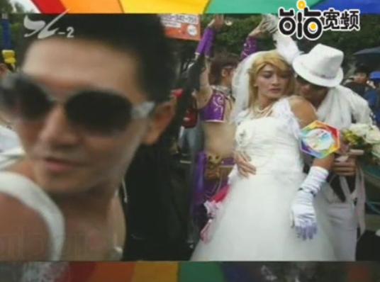 臺灣幾千人走上街頭爭取同性戀權益告
