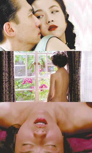 總的來說,因為對張愛玲的原著小說太過熟悉,劇情沒什么新鮮感。但李安交出的答卷可以說是不過不失,沒有太大的驚喜,也沒有太大的漏洞。至于國人好奇的那七分鐘,可以負責任地告訴大家,不看也沒什么損失,看了也不會受到毒害。沒有一點色情的意味,也完全沒有美感;缺了令人臉紅耳熱的呻吟和美倫美奐燈光的幫襯,看到的只是兩具不加修飾、線條一般的肉身在扭曲交纏而已。如果單獨截出來這一段來看,倒很象在毒氣室里絕望掙扎的無辜平民!從這一點上來說,李安的目的已經達到,男女主角末路狂花般的絕望氣息已經被觀眾感知到。