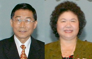 當(dāng)日高雄市長選舉兩位候選人:國民黨候選人黃俊英(左),民進(jìn)黨候選人陳菊(右)