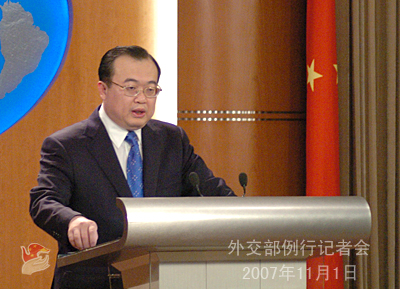 2007年11月1日下午,外交部發(fā)言人劉建超舉行例行記者會,就六方會談、緬甸問題、伊朗核問題等回答記者提問。