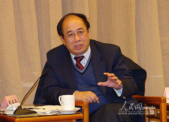 浙江省原省長、人事部原副部長萬學遠在座談會上發言。