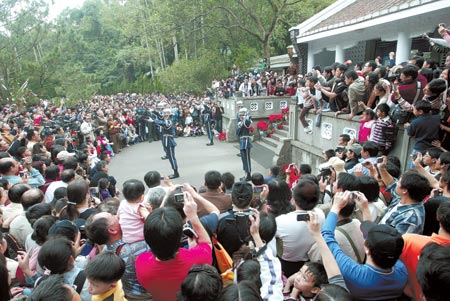 資料圖片:兩蔣陵寢12月24日起暫停對外開放,駐守的軍隊將在明年 元旦撤哨,23日為開放的最后一天,許多民眾高舉相機拍下歷史畫面。(圖片來源:臺灣《中國時報》)