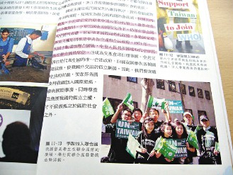 南一版的去年課本中,同樣章節(jié)選用的是兩張臺當局爭取加入WHO(世界衛(wèi)生組織)的照片;今年保留一張爭取加入WHO的照片,另一張換成“爭取入聯(lián)”的照片。
