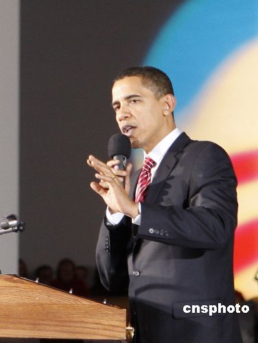 美國艾奧瓦州1月3日拉開2008年大選初選的序幕,人氣正旺的民主黨參選人奧巴馬,2日在艾奧瓦達拉皮茲市爭取選民支持。 中新社發 李靜 攝