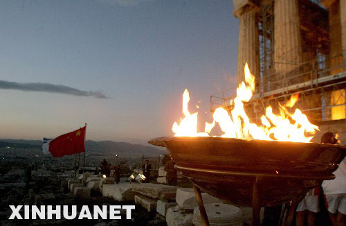 3月29日,北京奧運會圣火傳遞到雅典衛城。 新華社發