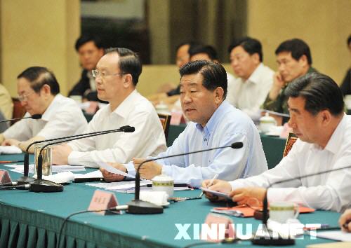 中共中央政治局委員、國(guó)務(wù)院副總理、國(guó)務(wù)院抗震救災(zāi)總指揮部副總指揮回良玉在座談會(huì)上講話。全國(guó)政協(xié)副主席、中共中央統(tǒng)戰(zhàn)部部長(zhǎng)杜青林出席座談會(huì)。